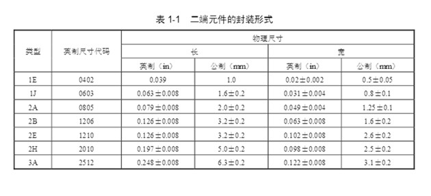 電子產品的集成度越來越高,體積越來越小,二端元件的封裝也越來越小,表1-1是目前二端元件的一些常見于封裝形式。